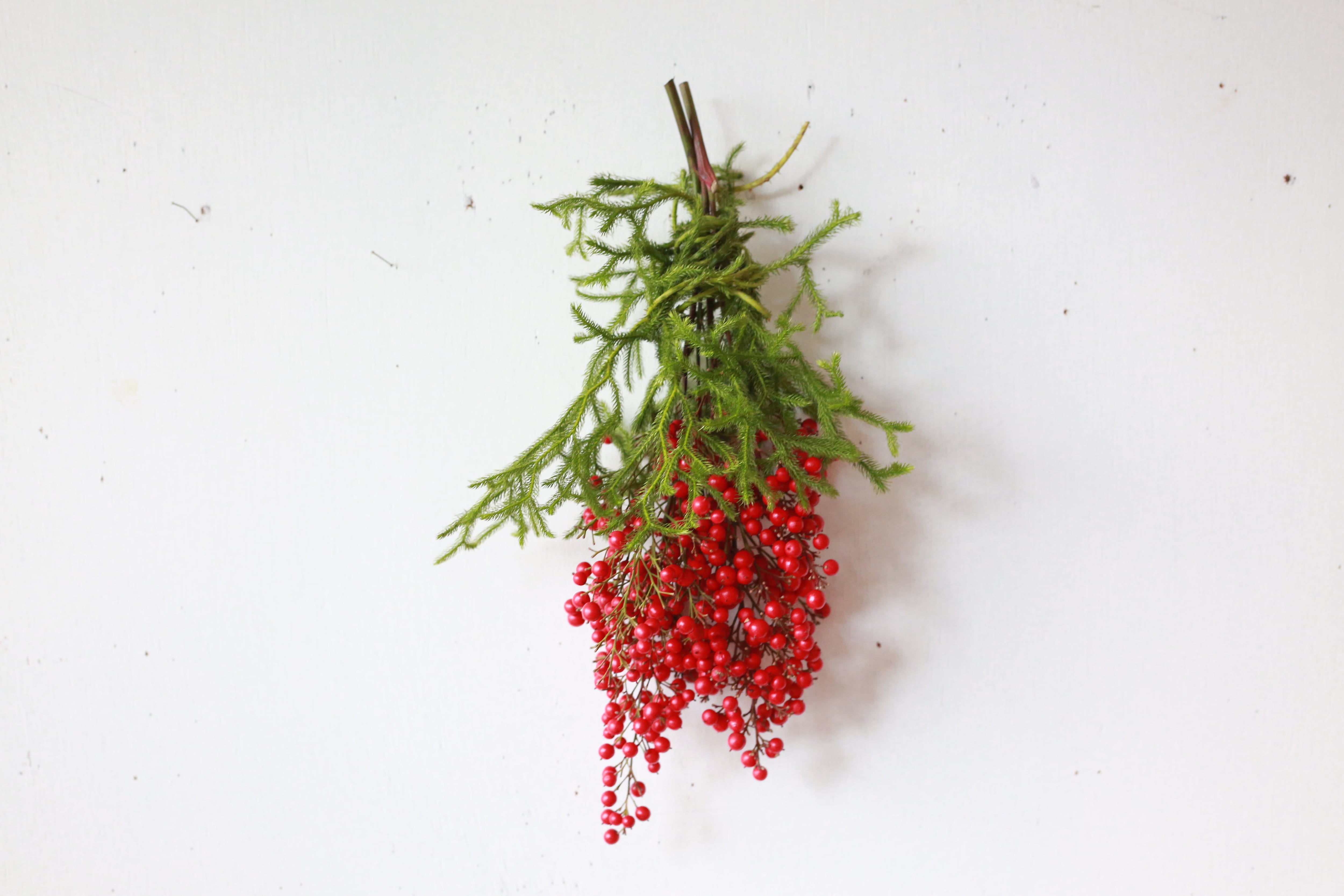 ワイヤーを使用せず南天とヒカゲノカズラのみでおつくりしました。